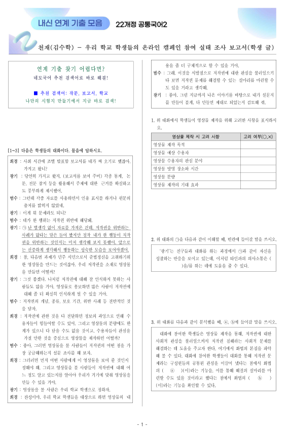 우리 학교 학생들의 온라인 캠페인 참여 실태 조사 보고서(학생 글)