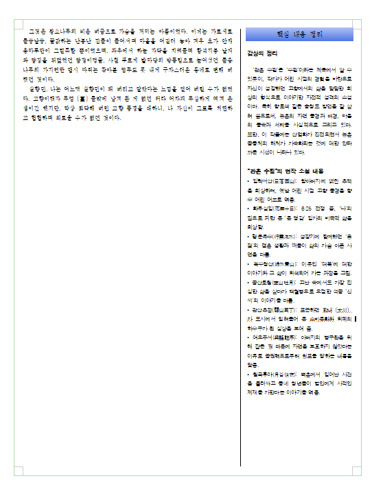 | [네모국어][현대소설] 말을 찾아서(이순원) 해석·해설·분석·요약·정리·문제·기출 PDF (0) | 2024.07.08 |