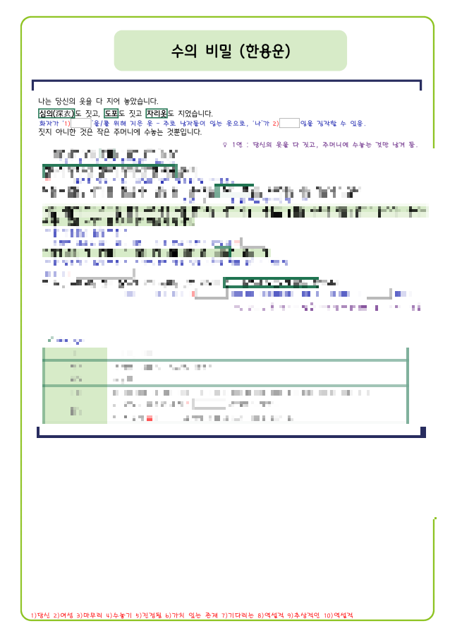 [현대시][본문빈칸퀴즈] 수의 비밀(한용운)