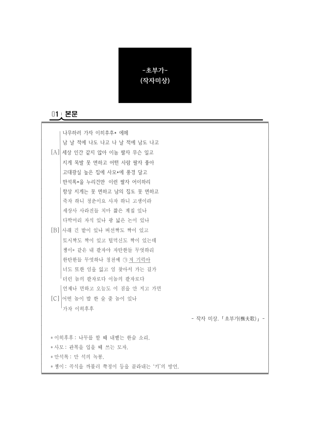[고전시가] 초부가(작자 미상) 정리·요약·해석·해설