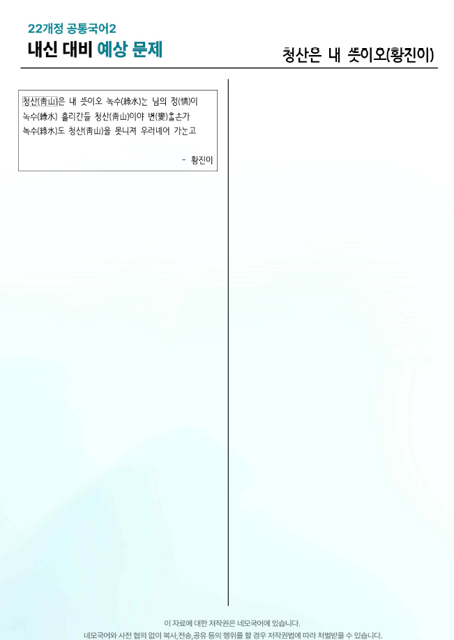청산은 내 ᄯᅳᆺ이오(황진이)