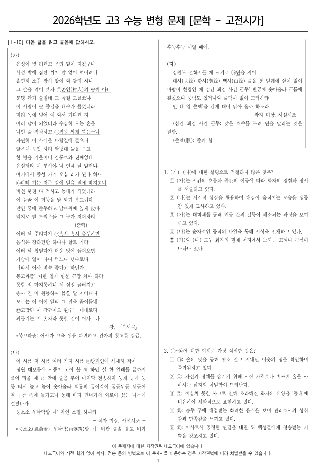 [2026학년도 고3 수능 변형문제]