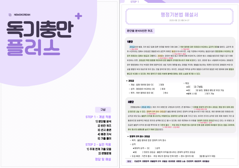 [네모국어] [독기충만+] 2025 9월 고2 모의고사 - 사회(행정기본법 해설서) STEP 1+2 문제·연계 대비 문제지·분석·해설·해석·원문·본문 pdf·고난도선별·출제포인트