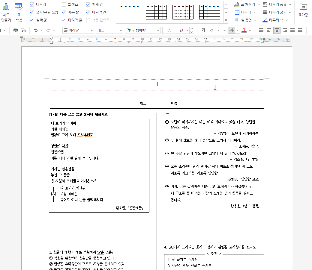 나만의 시험지 만들기에