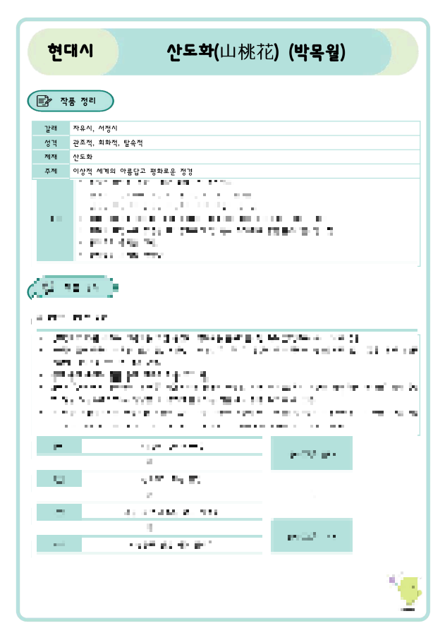 | [네모국어][현대시][문학 총정리] 윤사월(박목월) 분석·정리·요약·해설·해석·문제·기출 PDF (0) | 2024.07.23 |
