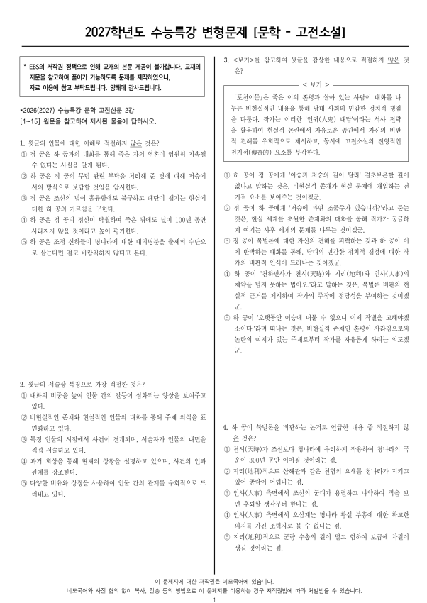 2027학년도 EBS 수능특강/고3/해석/전문/분석/해설/주제