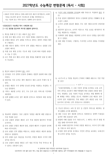 독서(사회) 특별 공공 행정 조직의 기능과 분류