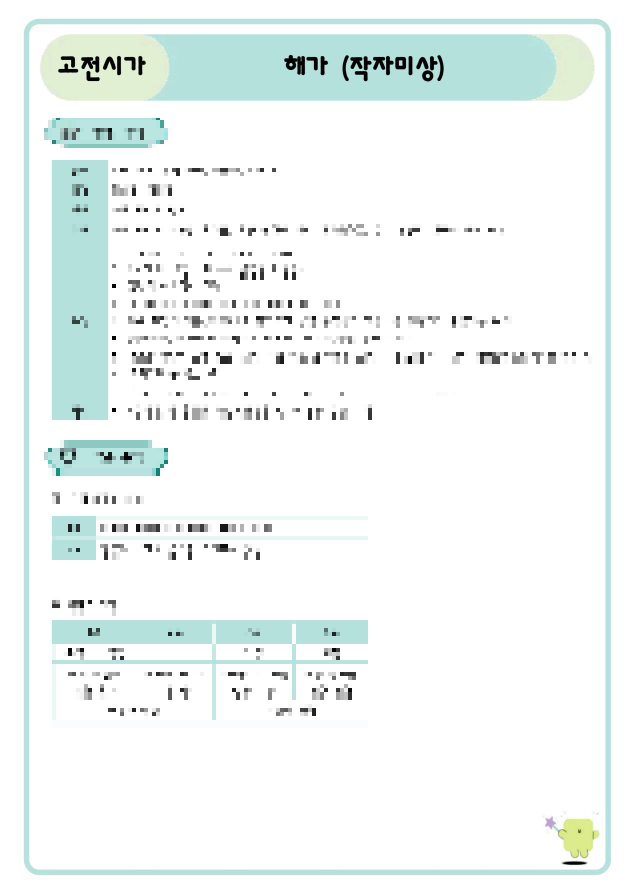 | [네모국어][고전시가] 도솔가(월명사) 분석·정리·요약·해설·해석 PDF (0) | 2024.07.29 |