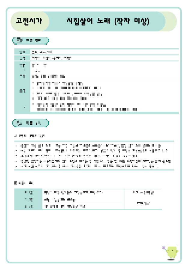 [고전시가] 시집살이 노래(작자미상)