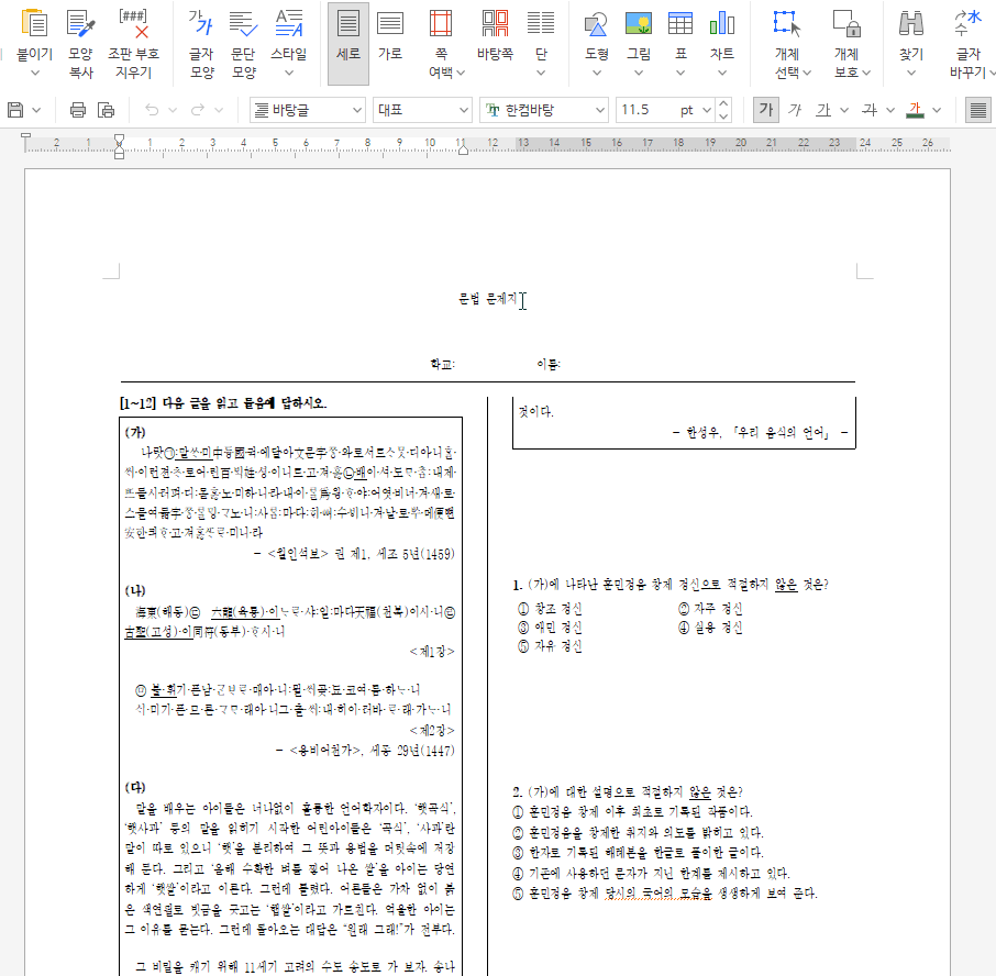 나만의 시험지 만들기에