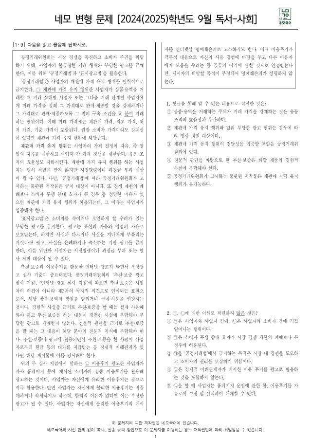 | [네모국어][고1 2024(2025) 9월 모의고사 대비 문제] 2025학년도 고1 9월 교육청 대비 모의고사 1회-3회 문제 (0) | 2024.09.03 |