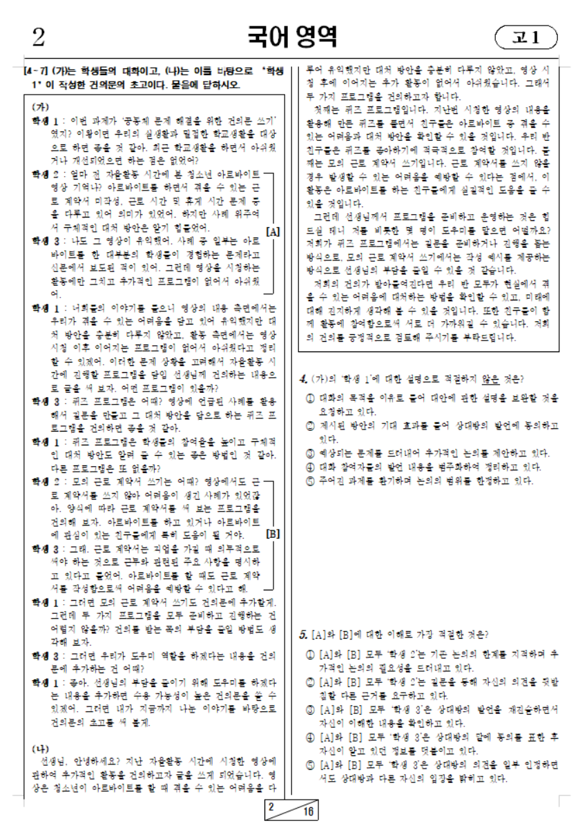 2024학년도 3월 고2 모의고사 국어 영역
