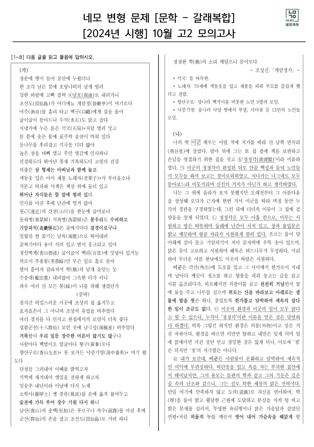 [네모국어][2024 고2 10월 기출 변형 문제]