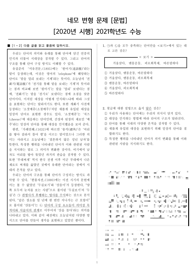 5분만에 완성된 나만의 국어 기출 문제지!
