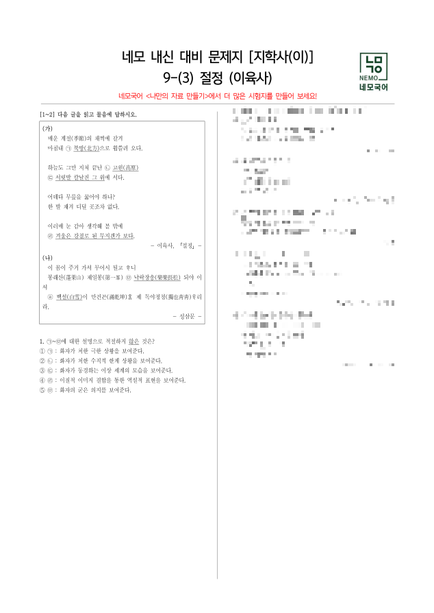 네모국어, 50,000개 이상 국어 자료 총집합, 맞춤형 시험지 제작, 국어교과서, 문학교과서, 독서교과서, 기출변형, 문법