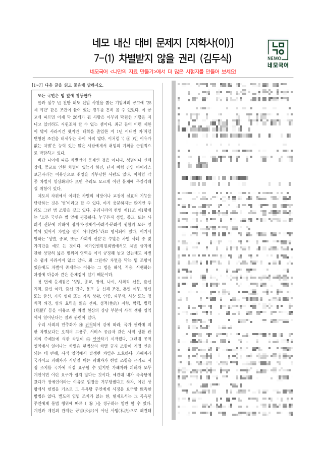 네모국어, 50,000개 이상 국어 자료 총집합, 맞춤형 시험지 제작, 국어교과서, 문학교과서, 독서교과서, 기출변형, 문법
