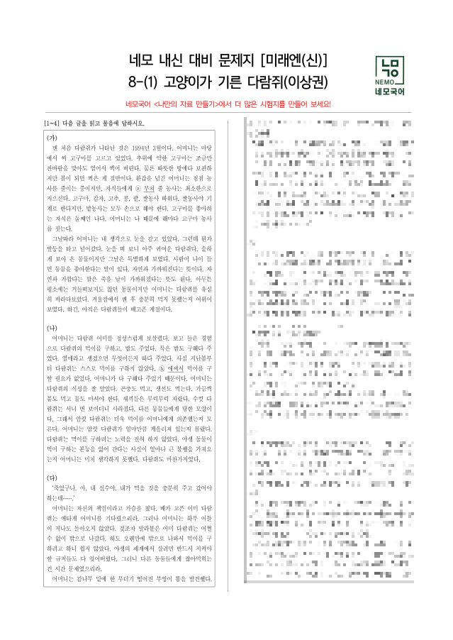 네모국어, 50,000개 이상 국어 자료 총집합, 맞춤형 시험지 제작, 국어교과서, 문학교과서, 독서교과서, 기출변형, 문법