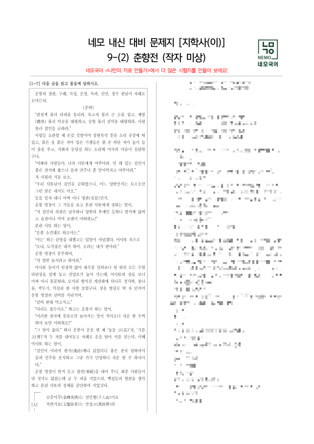 나만의 국어 기출 문제지를 만들어보세요!