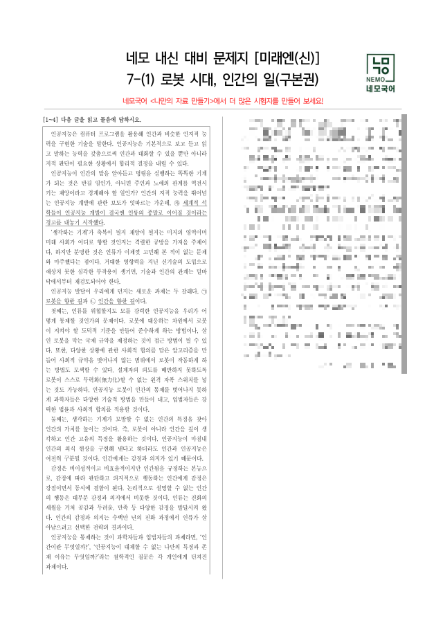 나만의 국어 기출 문제지를 만들어보세요!