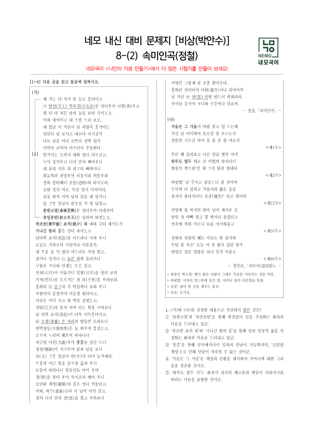 [내신기출모음][고전시가]