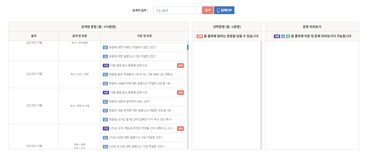 키워드만 검색하면 나오는 역대 내신 · EBS · 기출 문항!