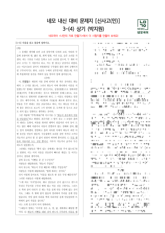 나만의 국어 기출 문제지를 만들어보세요!