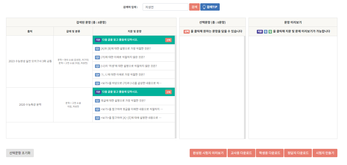 나만의 시험지 만들기에서 원하는 작가·작품·지문을 검색해보세요!