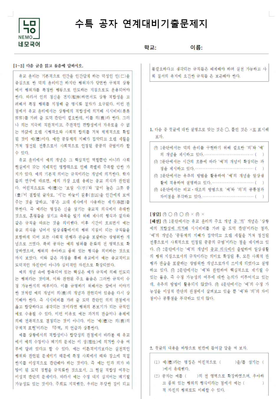 5분만에 완성된 나만의 국어 기출 문제지!