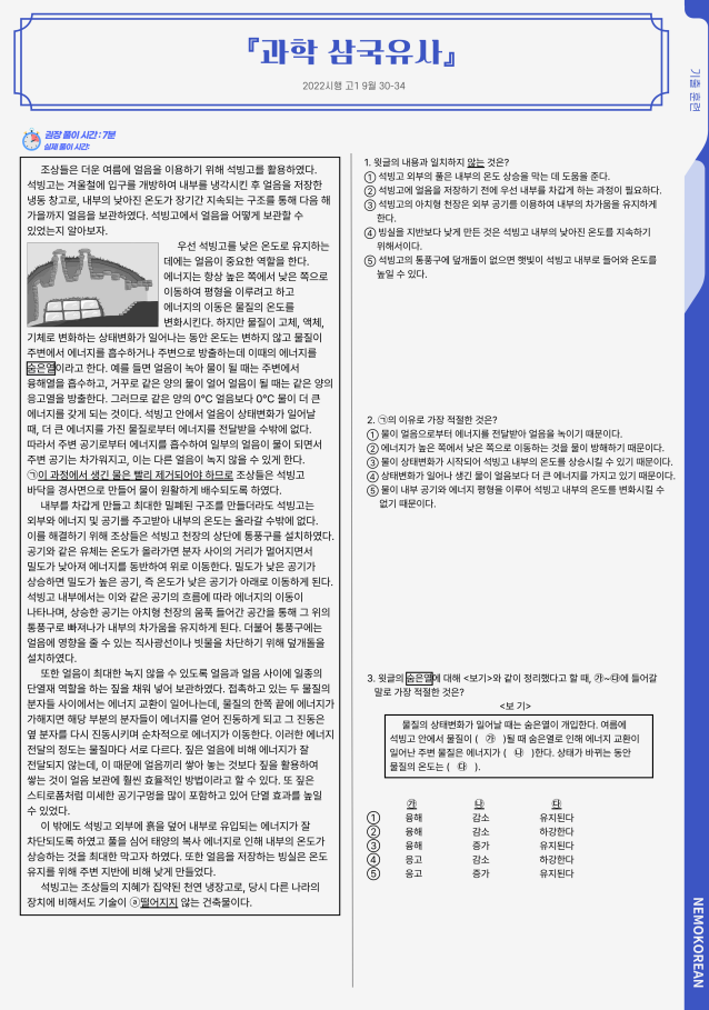 | [네모국어] 고1 독서 기출 훈련 및 스키마 28일차 - 과학 삼국유사 (2022 고1 9월) (0) | 2025.01.22 |
