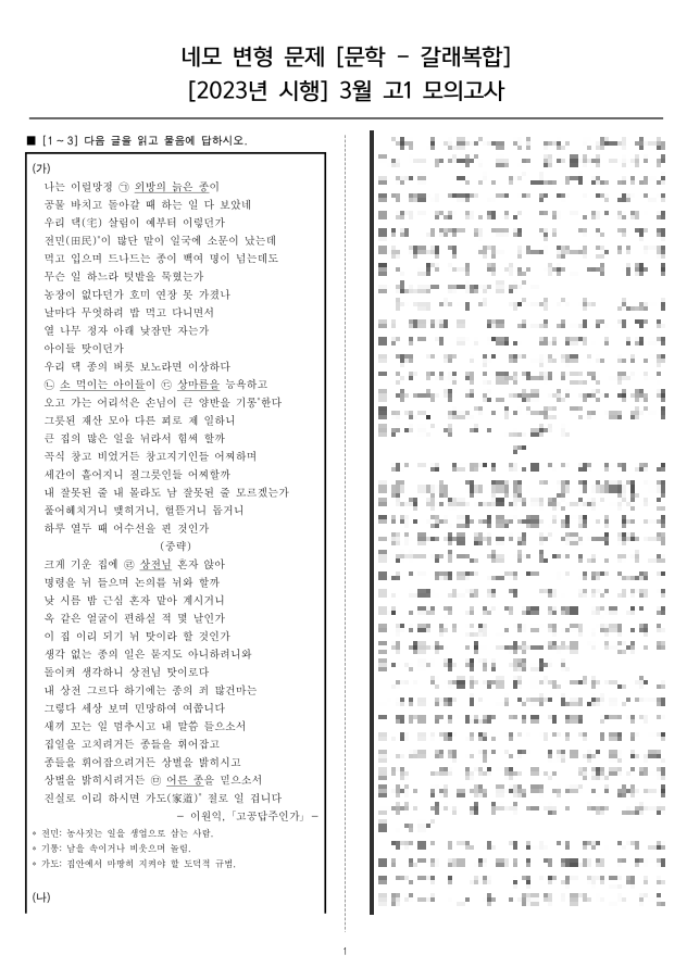 [2023 고1 3월] 문학(갈래복합) -