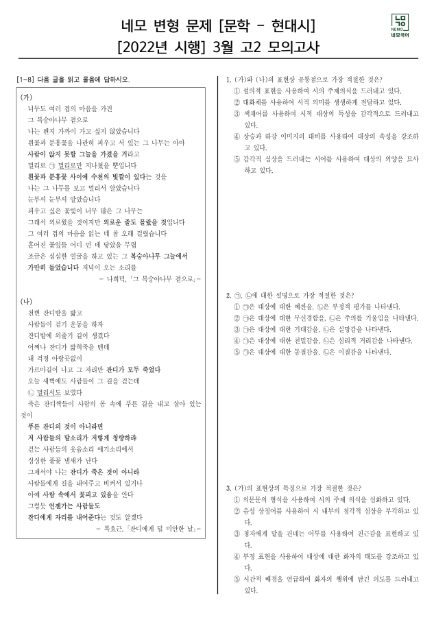 [2022 고2 3월] 문학(현대시) -
