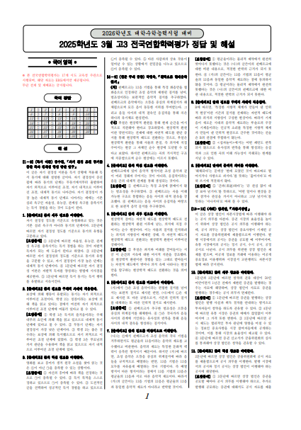 [2025 고1/2/3 3월] 전국연합학력평가(모의고사) 국어