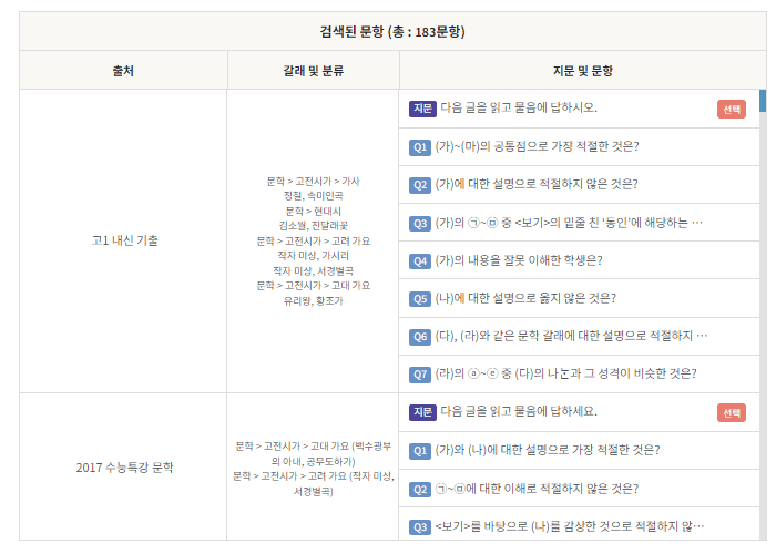 나만의 시험지 만들기에서 원하는 작품과 작가, 지문을 검색해보세요