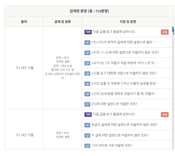 검색어에 따라 역대 내신·EBS·기출 문항이 나와요!