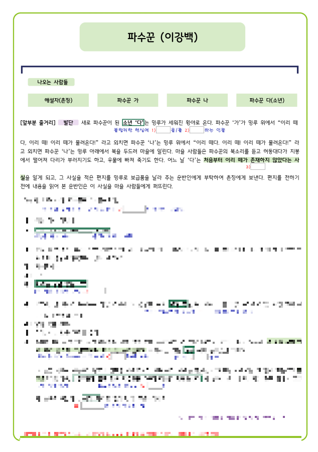 분석 · 해설 · 해석 · 본문 빈칸 퀴즈