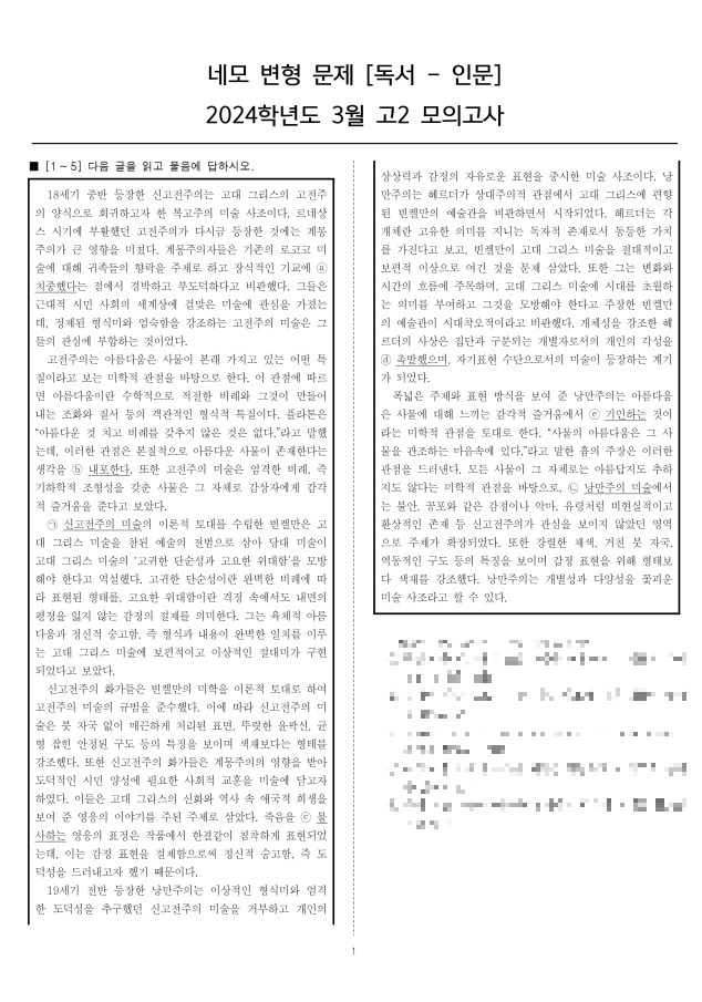 [2024년 3월 고2 독서 변형문제 바로가기]