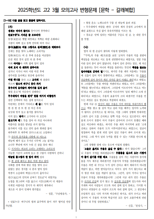 '고3'과 '우국가'가포함된 기출을 네모국어가 자동 검색해줍니다.
