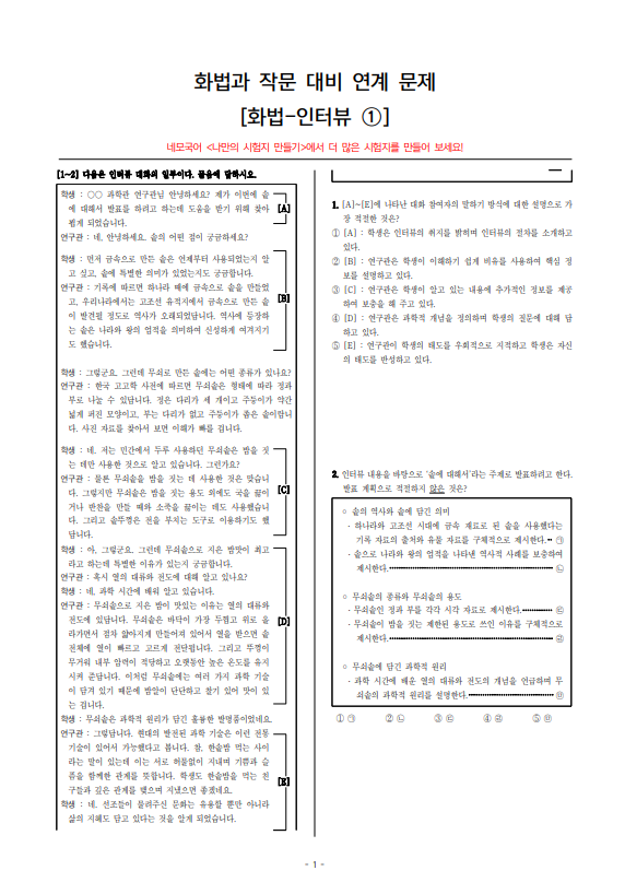 | [네모국어] [화법과 작문] 화법-면접 수능 국어 대비 기출 모음(교육청·평가원 기출 모음) pdf (0) | 2025.04.28 |