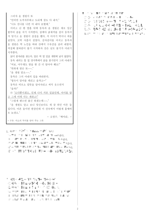 문학(현대소설) - 메아리(오영수) 변형 문제 및 정답해설