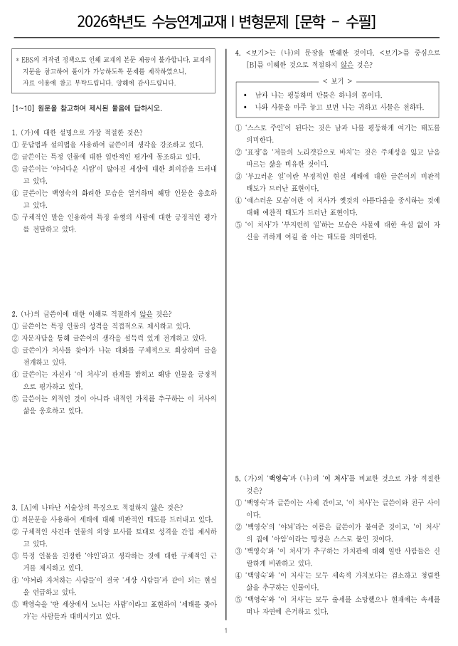 [EBS 수능특강 변형문제]