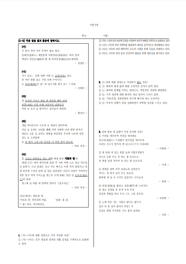 | [네모국어][고전시가] 천재(박) - 상춘곡(정극인)·울타리 밖(박용래) 내신 기출 문제·정답·해설 PDF (0) | 2024.06.19 |
