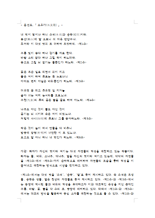 [오우가(윤선도) 분석·정리·해설·해석 다운로드 바로가기 클릭]