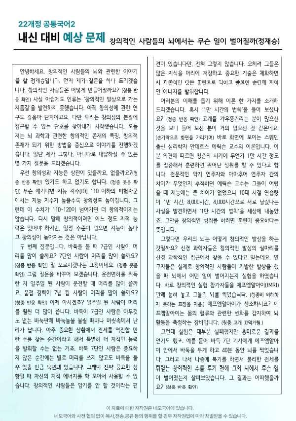 창의적인 사람들의 뇌에서는 무슨 일이 벌어질까(정재승)