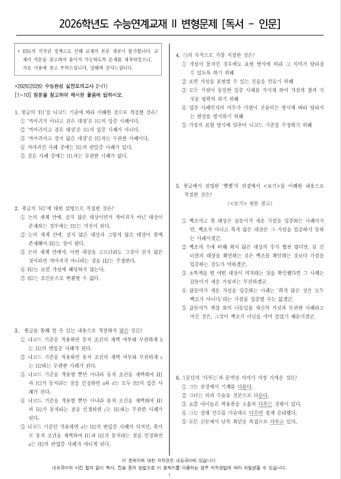 [EBS 수능완성 변형문제]