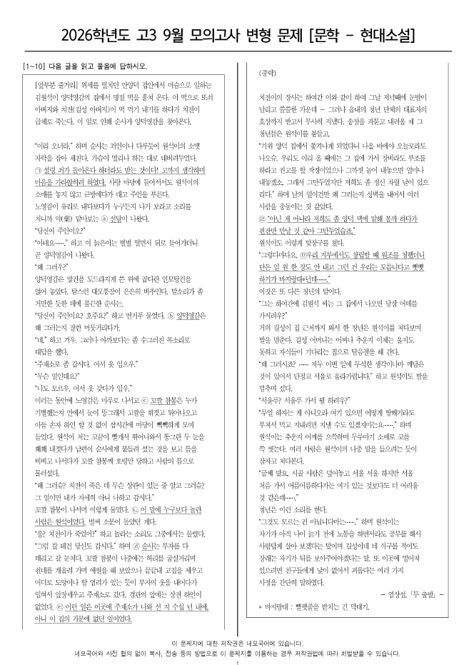 [2025 고3 9월 모의고사 변형문제]