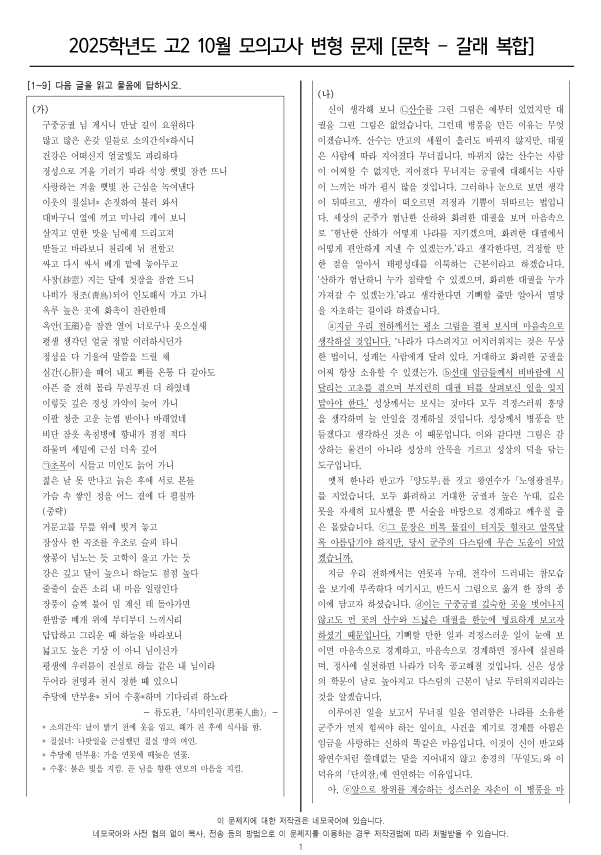 '고3'과 '우국가'가포함된 기출을 네모국어가 자동 검색해줍니다.