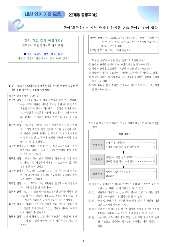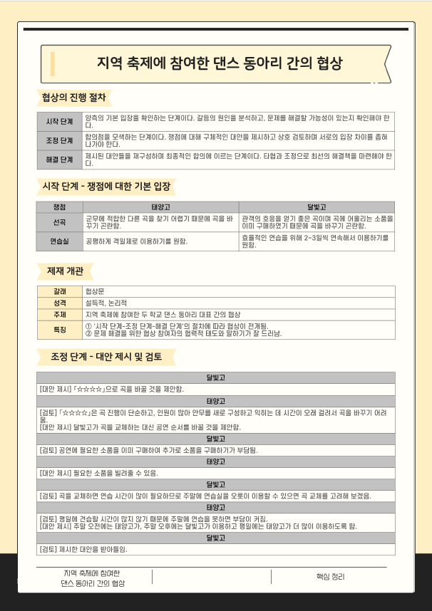 지역 축제에 참여한 댄스 동아리 간의 협상